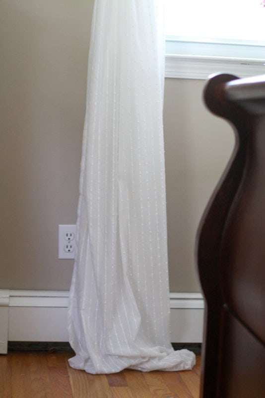 If I owned this house, I’d raise the curtain rods. But I rent so…pooled curtains it is!