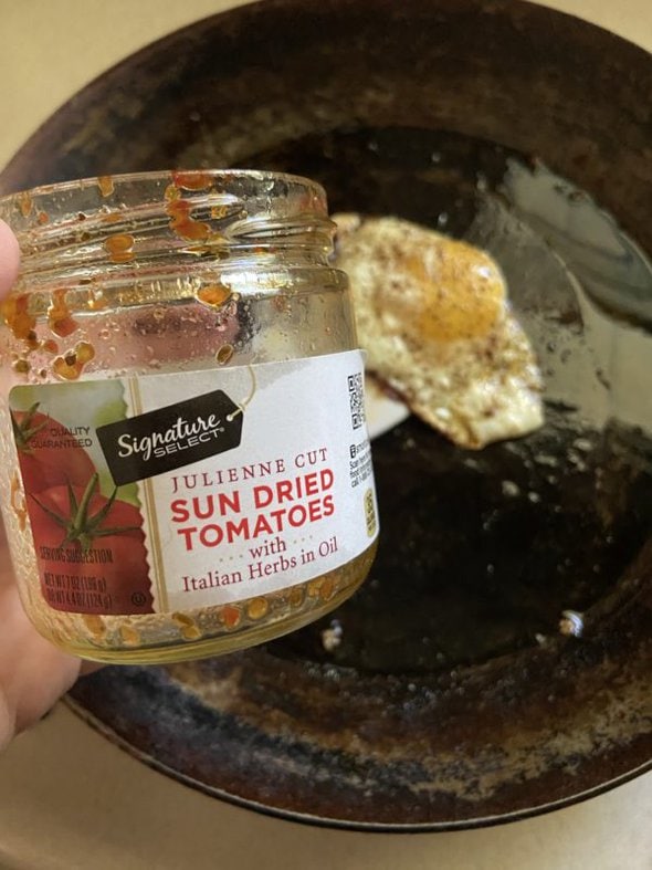 Remember how I froze roasted red peppers in this jar, and I totally thought they were sun-dried tomatoes? Whoops.