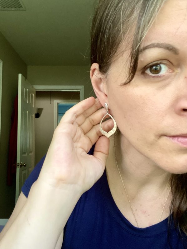 It’s surprisingly hard to take pictures of earrings when you are wearing them.
