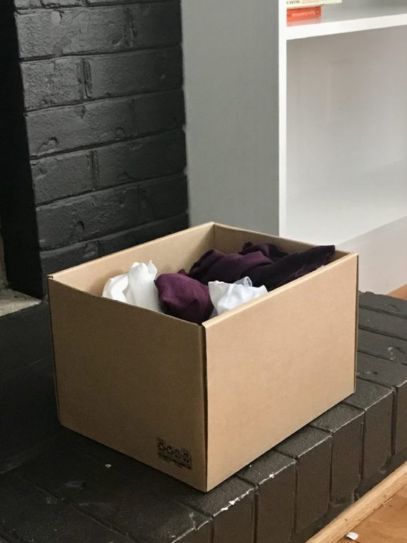I’m storing the box in the linen closet, not in the living room. But the linen closet is too dark for a photo. 😉