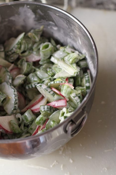 a snap pea, cucumber, and radish salad from Dinner Illustrated