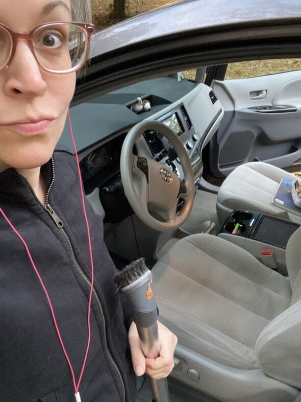 This is the face of a person who hadn’t vacuumed her van in a while. Ahem.