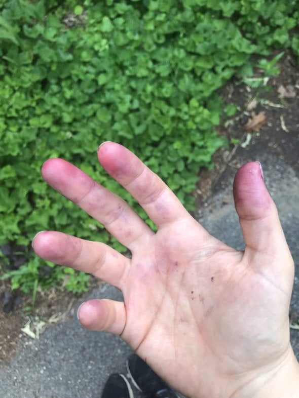I always loved picking mulberries in my old neighborhood, so I was delighted to find a mulberry tree on my walking route here. Yay!