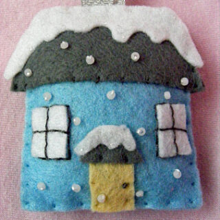 This house is made of basic shapes that are simple to cut out. I love the bead "snow".