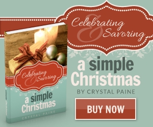 Hey there, readers! Today, we have a guest post from Crystal Paine, whom most of you know better as Money Saving Mom. She’s got a new ebook out about simplifying Christmas, and she asked if she could share a guest post here. As you know, I usually say no to guest post requests, but I’m delighted to open my blog up for Crystal.