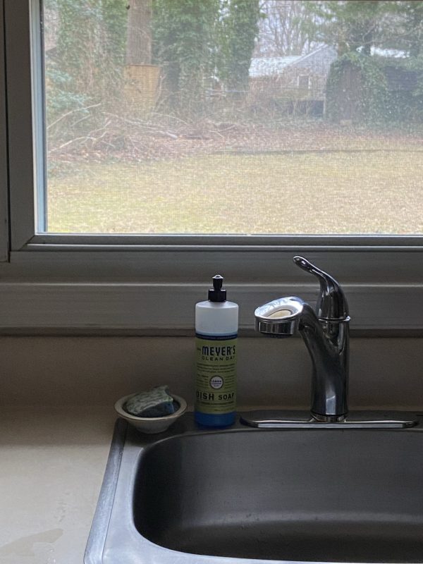 But at this house, there’s a window above my sink, which means that I can look out at the backyard when I am washing dishes. I like that!