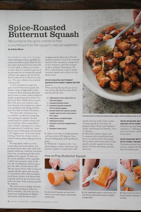 I got a new Cook’s Country issue this week (Yay! Always a good day when that arrives.), and inside there was a recipe for roasted butternut squash.