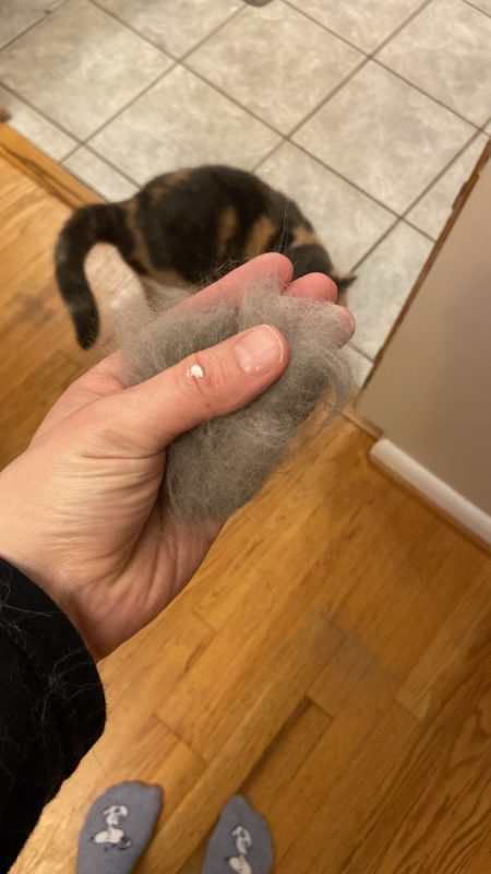 I brushed her for a minute or two last night, and this is how much hair came off.