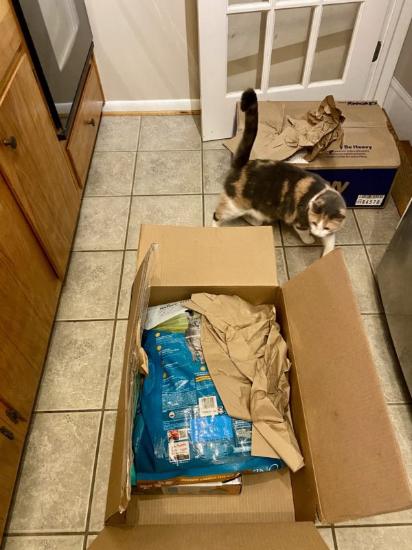 I brought in my Chewy order and put it away, with Chiquita supervising.