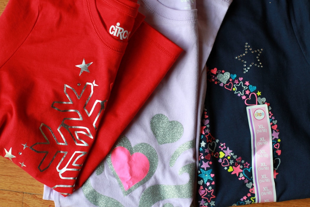 Girl’s long-sleeved t-shirts are definitely something I’d need to buy new if I couldn’t snag any used ones. And they’re so not unnecessary clutter…after all, three girls will wear them (if they last that long!).