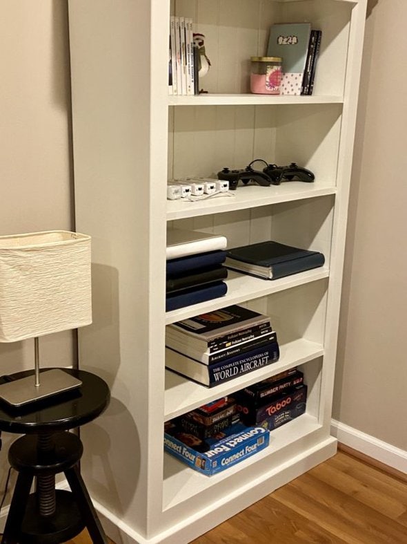 When it was finished, I put it into our downstairs den, where it held books and some games/movies.