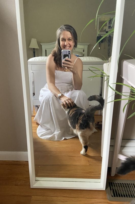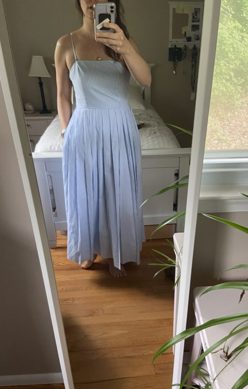 I saw a Target dress on Instagram (I think?) and I decided to give it a try. I could only find a white one at our local Target, so I bought that, but then I second-guessed myself and also ordered a blue-striped one.