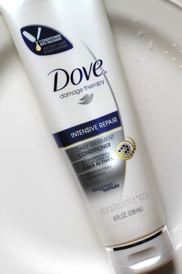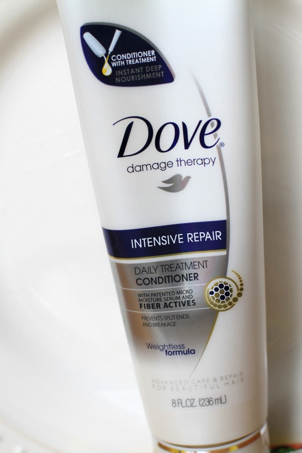 I’ve used regular Dove conditioner in the past, and I’ve always been pleased with it (no candle-wax effect!) This product is a little different than other Dove conditioners, though, because it promises to provide serious damage therapy without weighing down your hair.