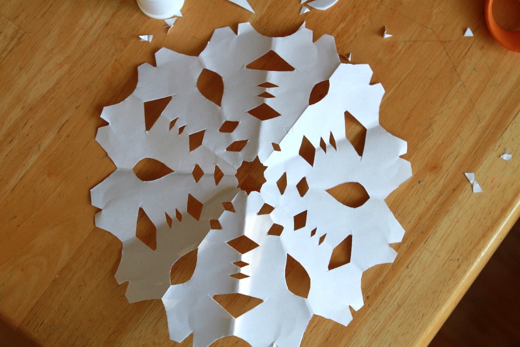 For our first craft, we decided to make paper snowflakes. Now, if you’re like me, you used to make these when you were a kid, and they turned out kind of like this.