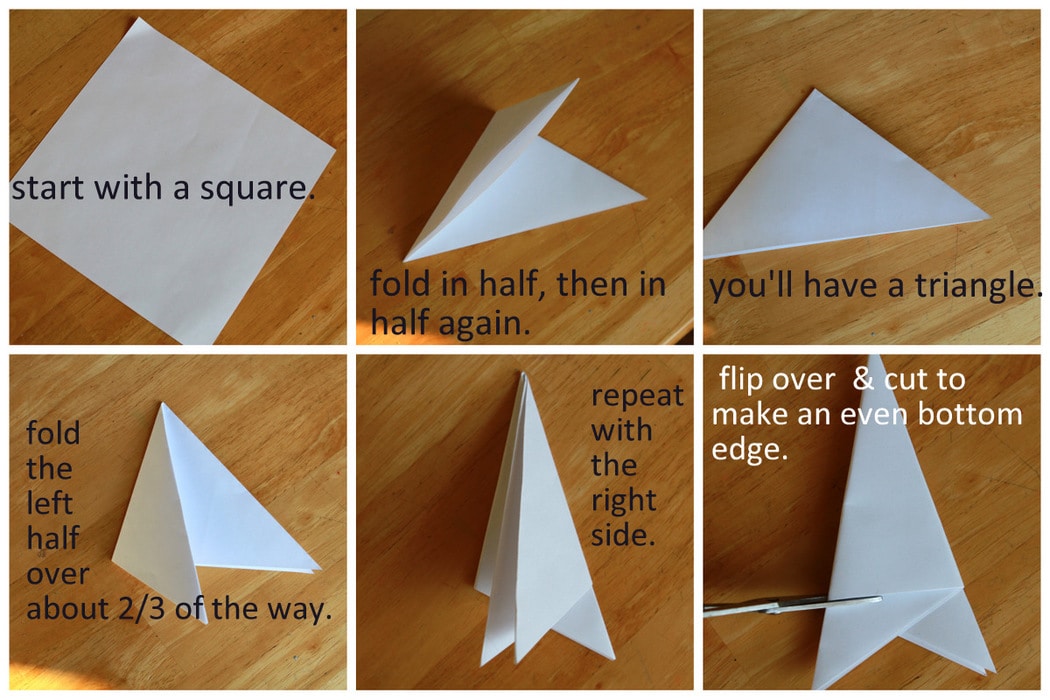 Basically, you just need a square of paper (the larger the better if you’re going for ease during the cutting stage) a pair of scissors, and the following steps.