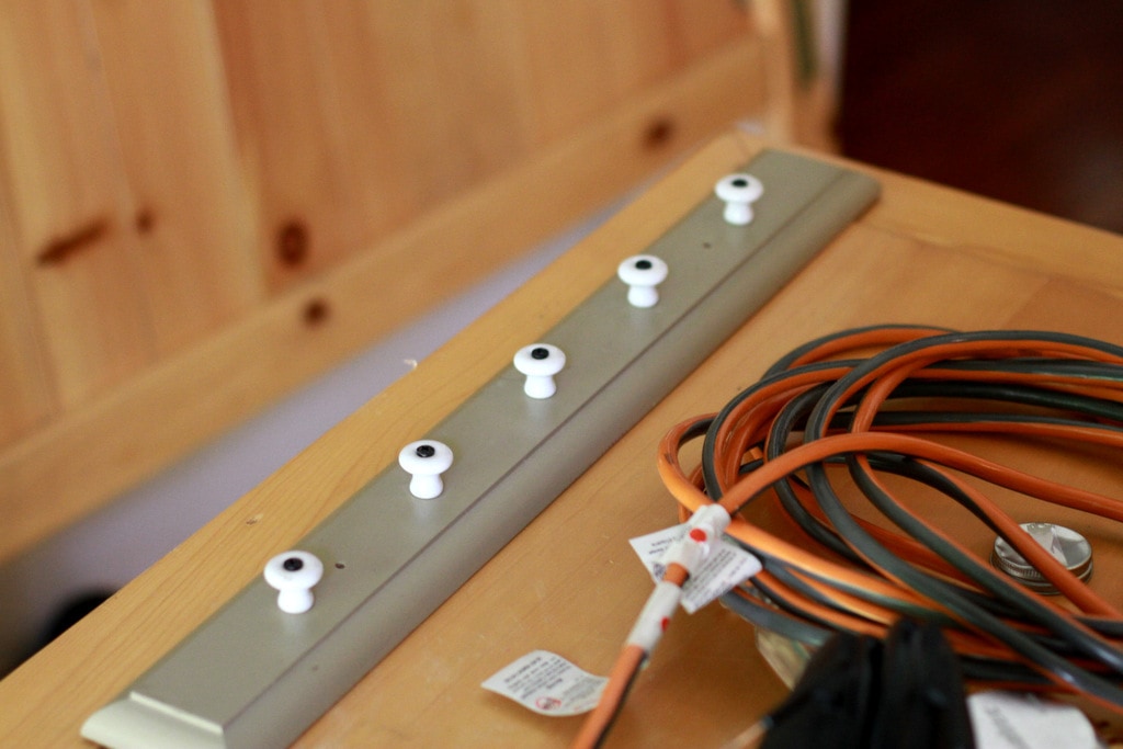 The knobs on this rack are too small and too slippery to be useful for hanging things like clothes, but that’s not what I had in mind anyway.