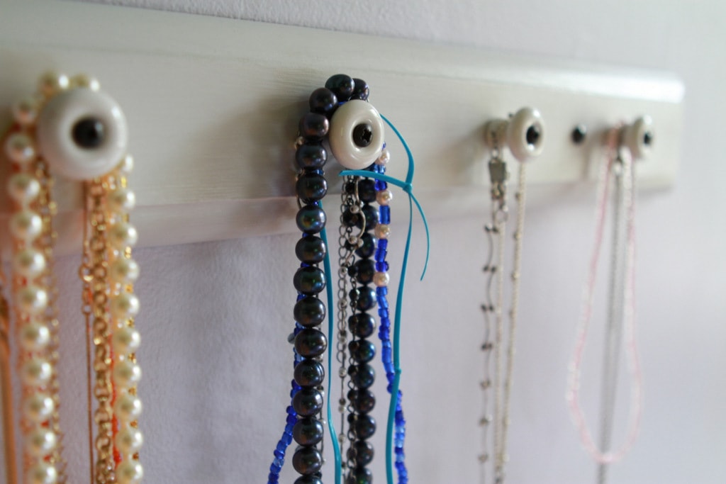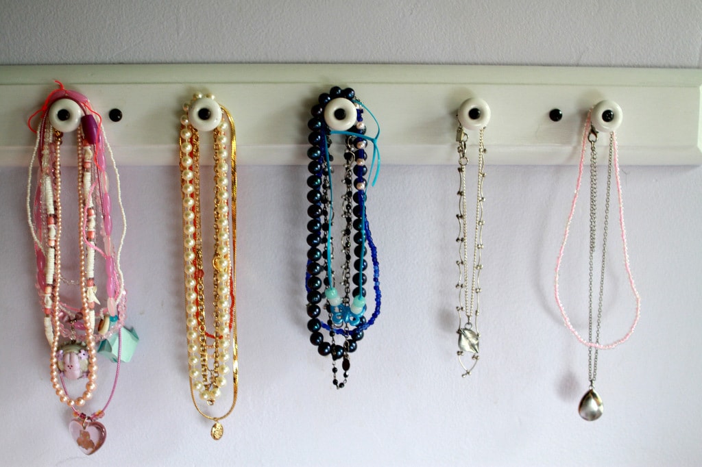 Not only does it keep their necklaces organized and within reach, I also think it looks pretty nice hanging on their wall.
