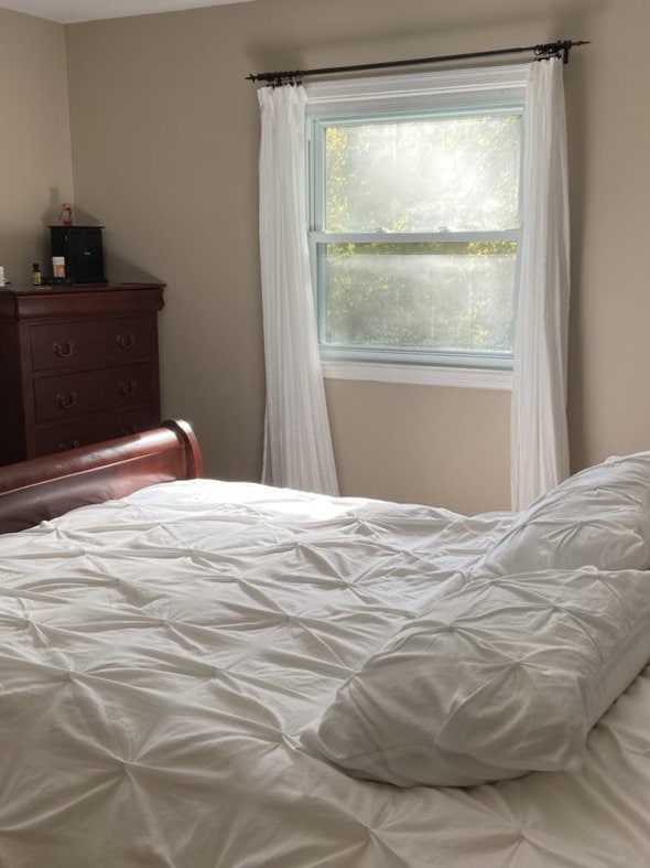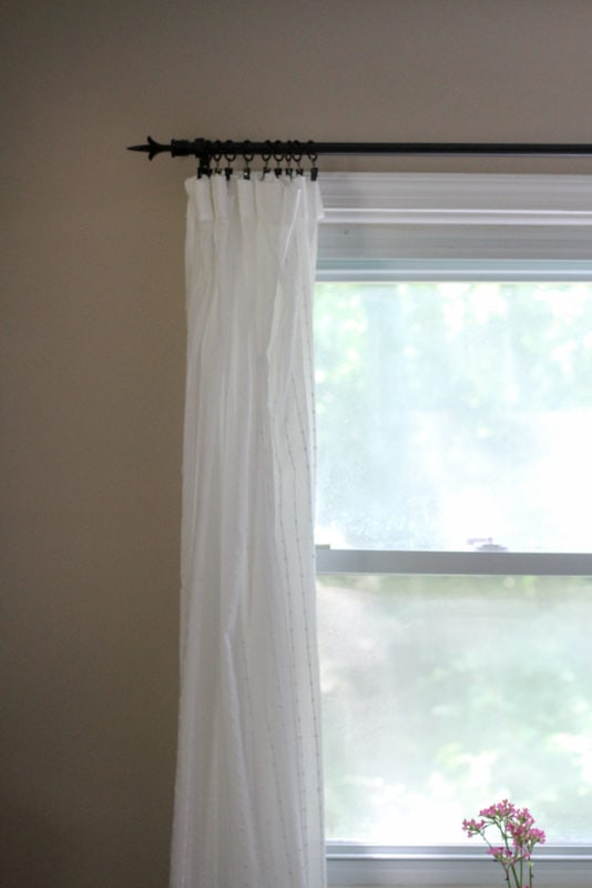 If I owned this house, I’d raise the curtain rods. But I rent so…pooled curtains it is!
