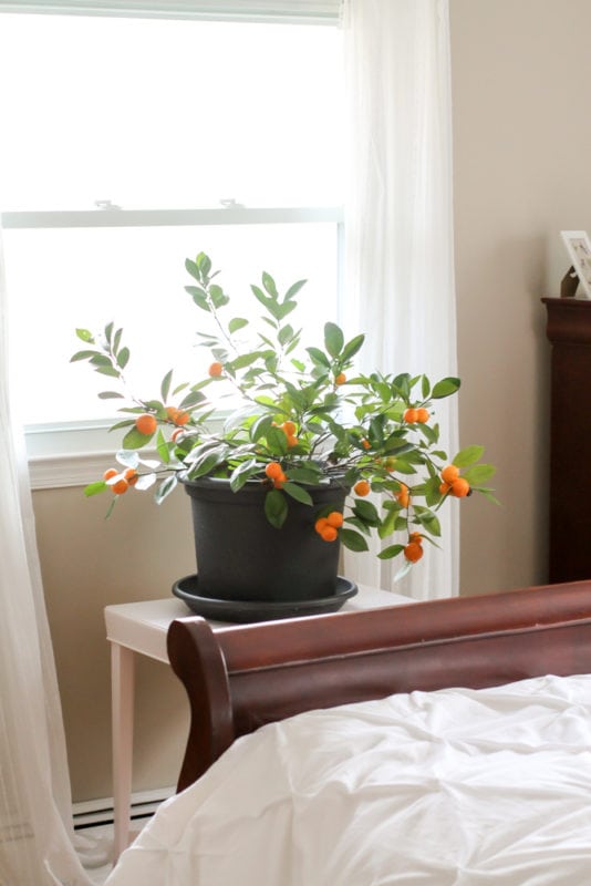 You should be proud of how your space came together. It is serene. No drama. I love the orange tree. That pop of orange color is beautiful.