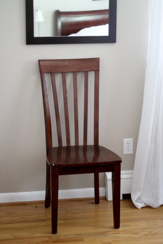 I left every piece of furniture (all Freecycle furniture that I painted), the bed, the lamps…I really just took my clothes. That meant I was starting pretty much from scratch when it came to my bedroom here at this house.