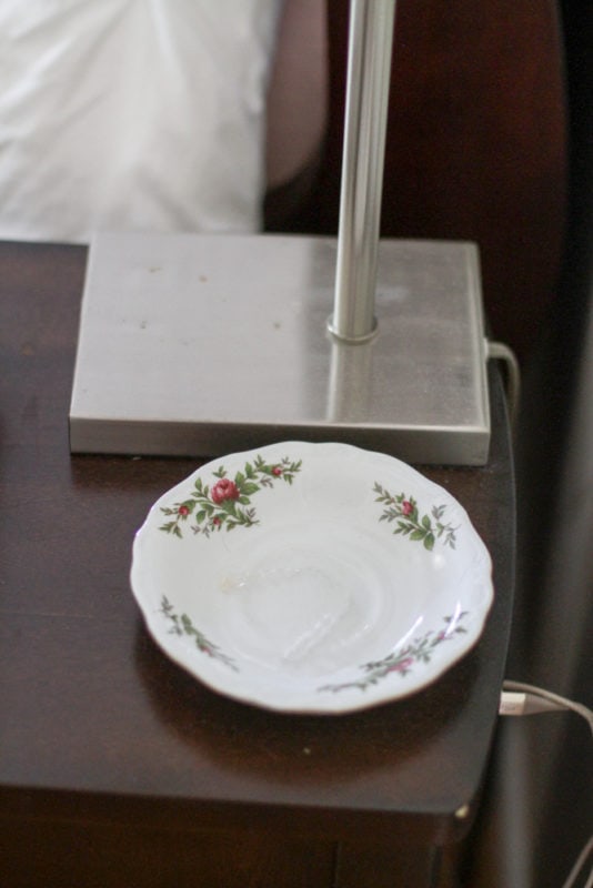 I keep a little dish from the abandoned house on the nightstand to hold my night guard for my teeth. 😉