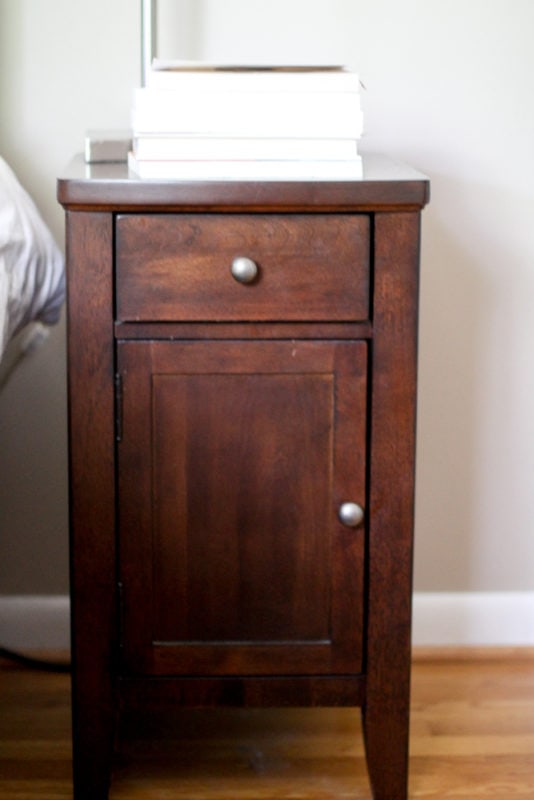 First, we have my little nightstand, which a friend from book club was getting rid of.