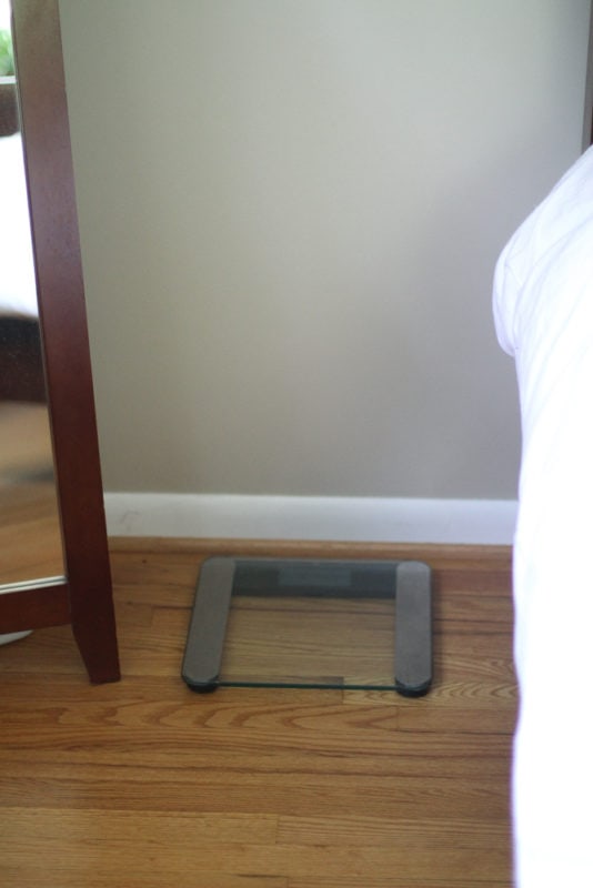 Next to my bed is a scale that my abandoned-house sister-in-law gave to me because she had an extra one. I mostly use it to help me weigh eBay packages. 😉