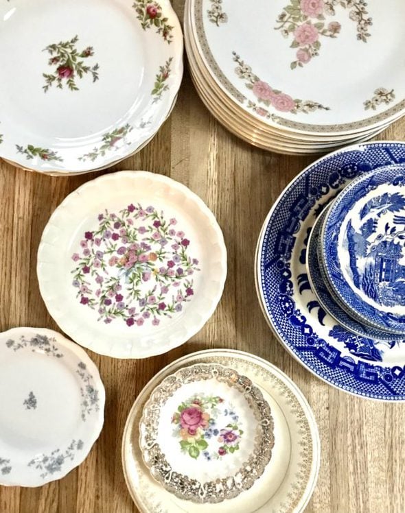 There’s SUCH a random assortment of things; various pieces of mismatched china, some usual household dishes like Corelle Ware, some pieces that are definitely from a restaurant (like super thick plates and mugs), and more.