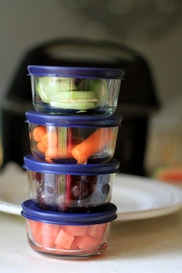 Probably my most-used lunchbox item are my small Pyrex containers. I love these for sending fruits and vegetables.