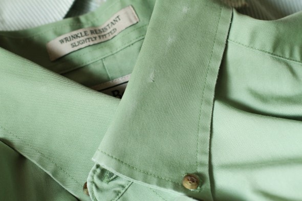 P.S. I browsed around the internet to see if I’m the only person this has happened to, and most of what I came across said to unbutton things to reduce wear on the button stitching. So I guess even if your shirt collars are weathering all right, it’s still a good idea to unbutton before washing.