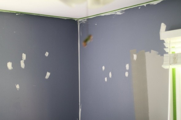 His room wasn’t really in terrible shape before we tackled this project, but there was some damage to the walls (old wall paper glue seeping in, holes, scrapes, etc.) and the moldings were really beat up.