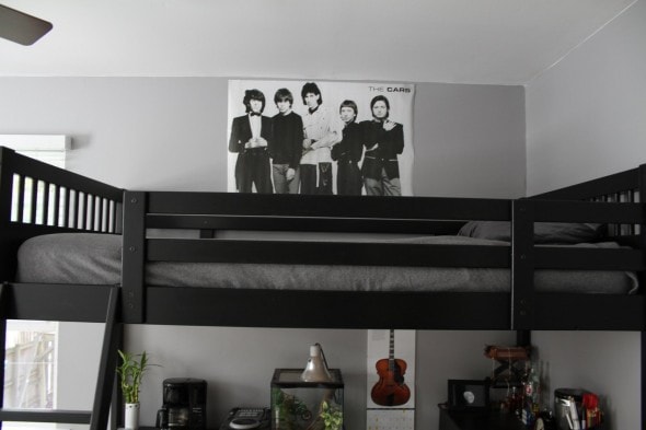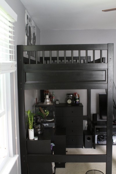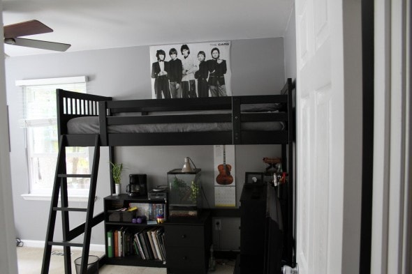 The main reason we took this on, though, was to get the loft bed into the room and to free up some space for a future drum set purchase.