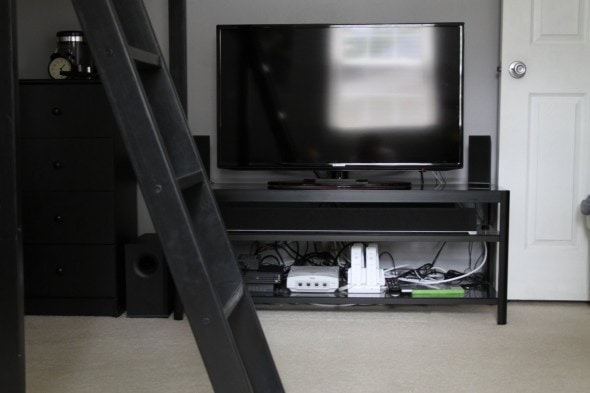 Another problem in Joshua’s room is that the storage was a little not-cohesive. And we knew we wanted to get rid of the enormous 1000-pound TV in the corner.