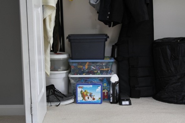 Because Joshua’s room is the largest, we’ve always stored some toys in his closet. When we put his room back together, we sorted through the toys, gave away ones that no one really loves anymore, and kept only the ones that are really timeless.
