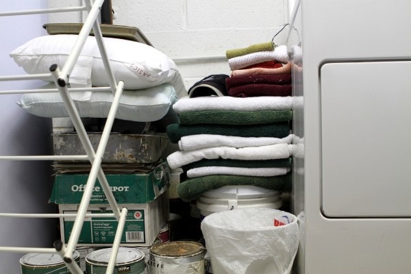 I didn’t purchase anything, and my laundry room looks far different than it did before. I just got rid of clutter and stored my remaining belongings more efficiently, and the cost for that is simply time.