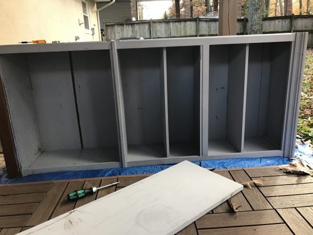First, I unscrewed all the shelves and removed them because I knew that would make the sanding and painting process so, so much easier and quicker.