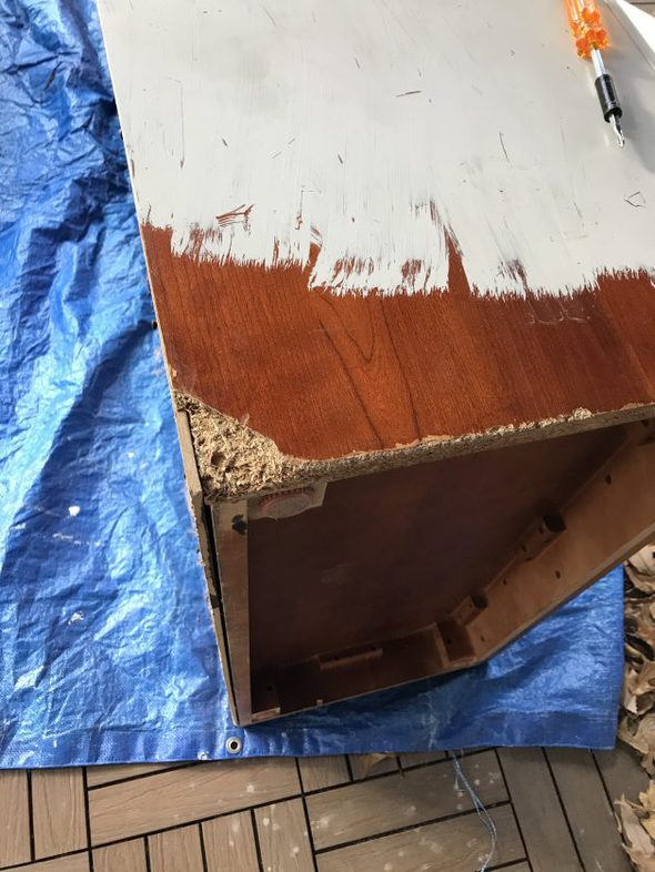 I gotta tell you, chalk paint is kind of a bear to sand off. And I was even lucky with mine because the previous owner had not put the wax topcoat on.