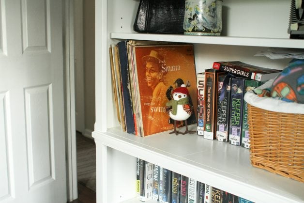 Since the shelves are adjustable, we were able to make one of them high enough to house Sonia’s records.