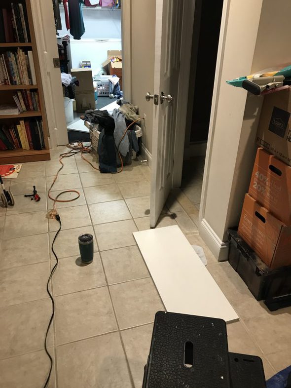 Also, there’s a small portion of the trim by one shelf that’s damaged, but since it’s all white, it’s very hard to see.