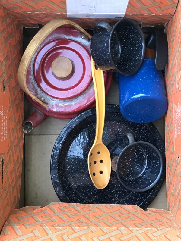 I also gave away a box of staples (from the treasure house!), and several metal/plastic dishes (someone wanted them for her daughter’s backyard mud pie kitchen).