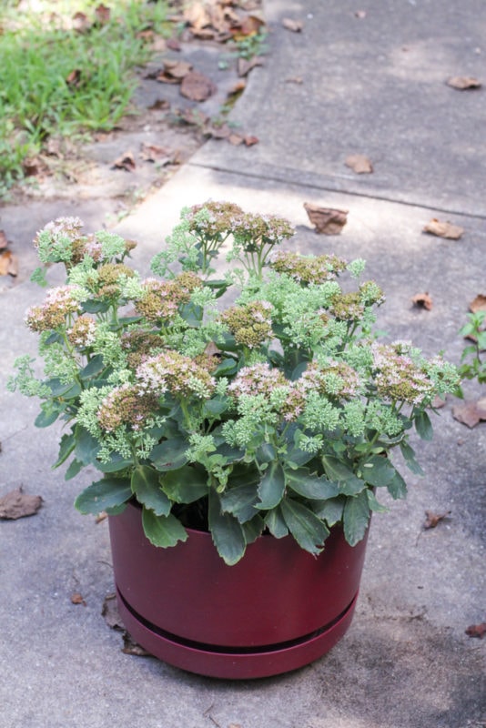 I spray-painted the terracotta pot on the left with purple spray paint.