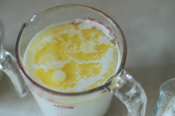 Combine the milk mixture and the yeast mixture in the bowl of a stand mixer, and add 2 cups of flour. This will make a pretty soft mixture, which you’ll beat for two minutes.