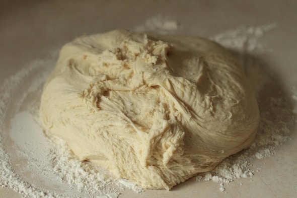 Knead the dough for 3-5 minutes, at which point it should feel elastic, but still fairly soft.
