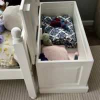 Many years ago, I got a little wooden chest from freecycle. I painted it white, and I put it in Zoe’s room, and then Lisey’s, …