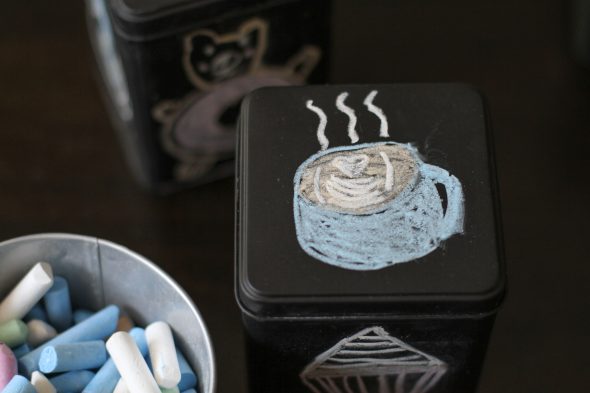 I’m not very good at drawing with chalk, but Sonia and Zoe put some art on the tins so I could take pictures for you guys. 😉