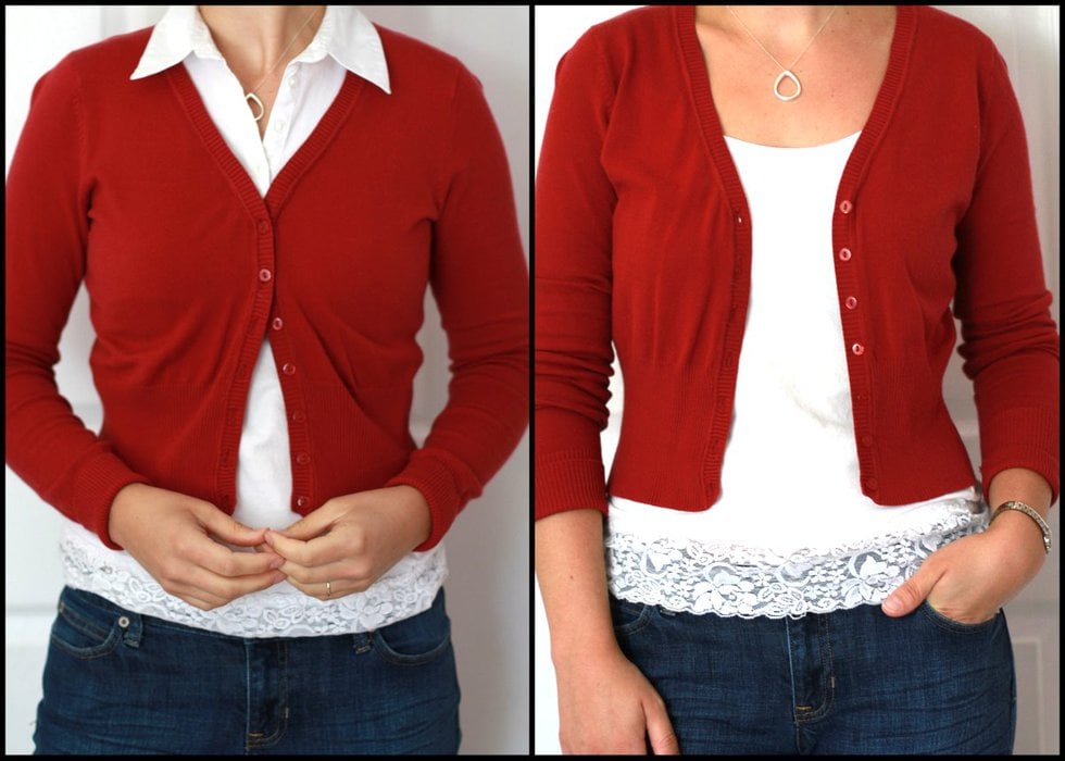 (That’s a tip from my ebook, by the way. Before you give up on a piece of clothing, see if you can cut off part of it. This works great for faux-layered items like my sweater.)