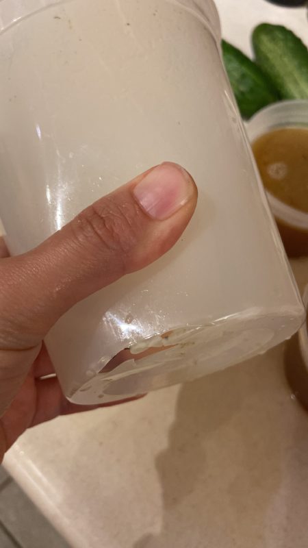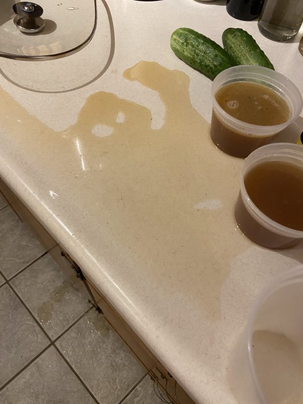 When I was pouring the broth into the containers last night, I noticed a growing puddle underneath one.