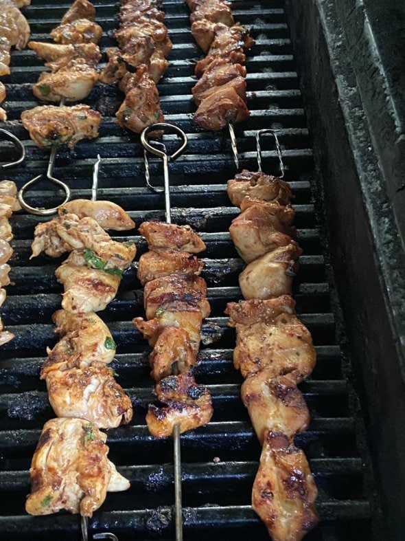 Thigh meat generally takes longer to cook, so I didn’t want to mix the two on a single skewer.