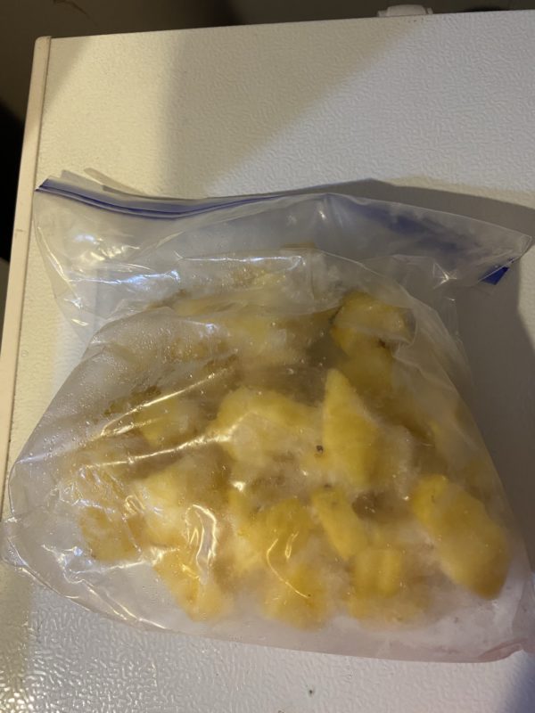 This is a bag of pineapple chunks, and I seriously had no idea it was in there. But this is perfect because pineapple is a great addition to a peach smoothie.