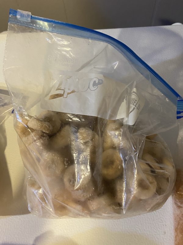 I could use these banana slices in smoothies, or maybe I will make the strawberry-banana “ice cream” I posted about some years ago.